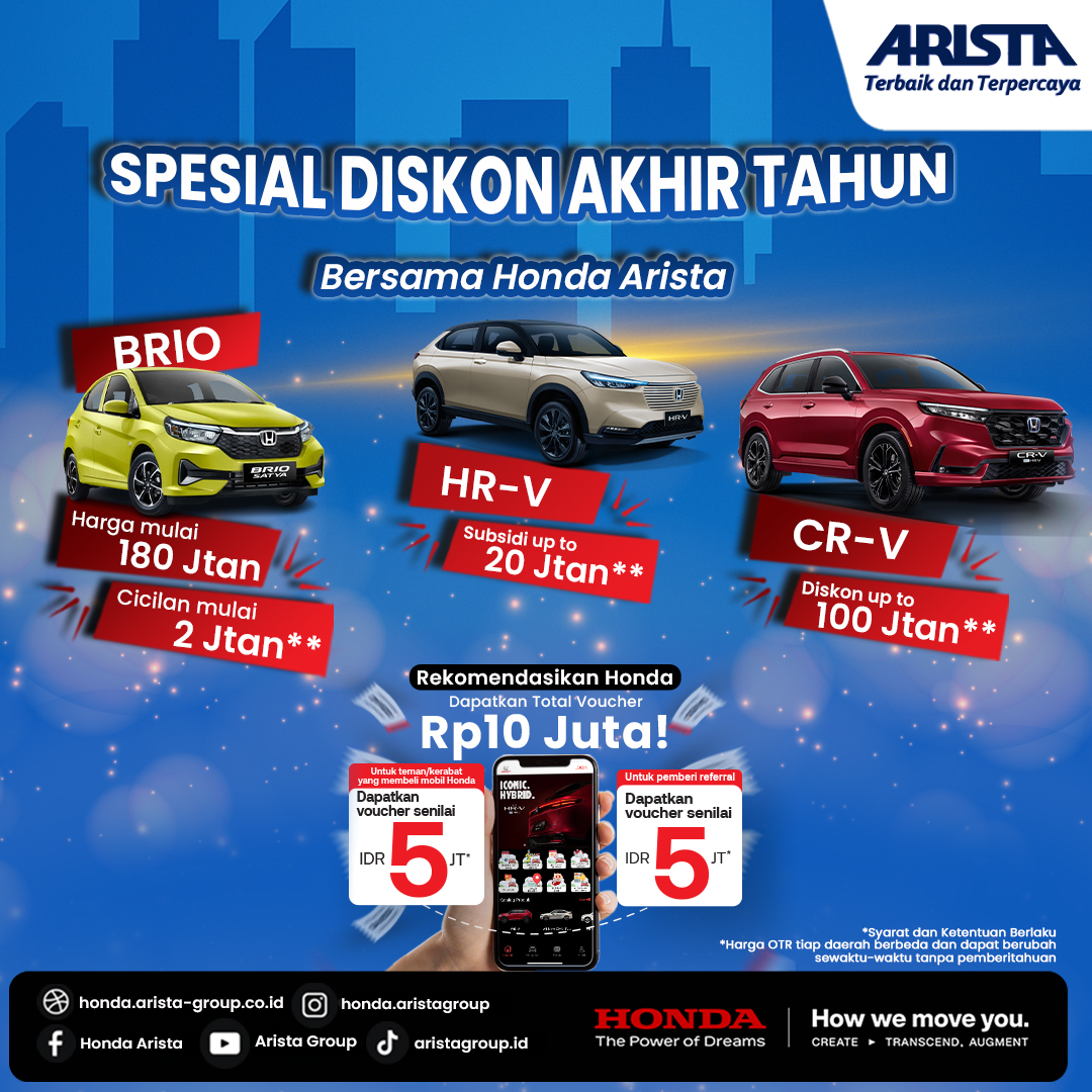 Honda Arista menyediakan promo khusus untuk Anda, dapatkan mobil impianmu dengan jaminan: